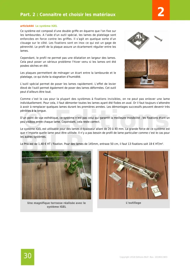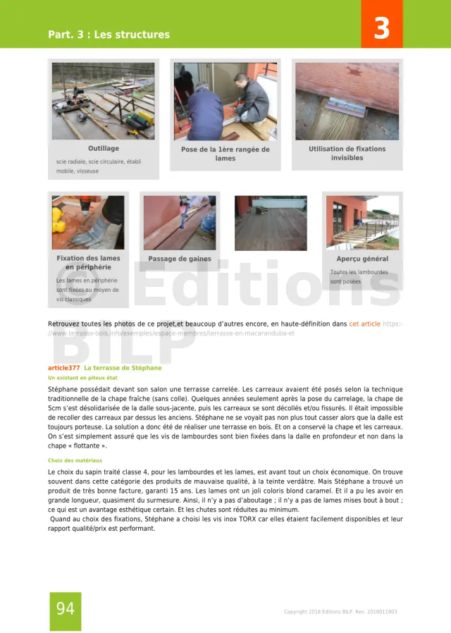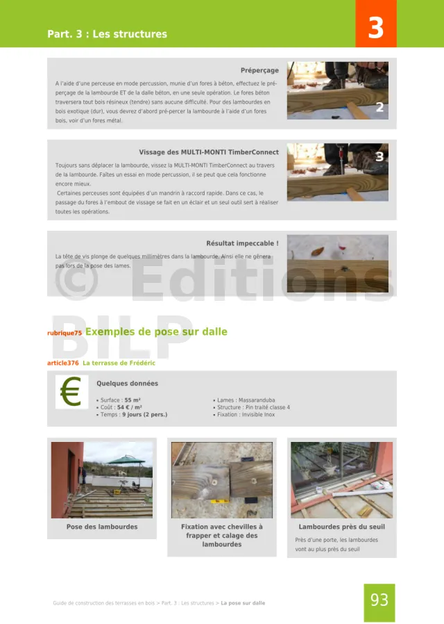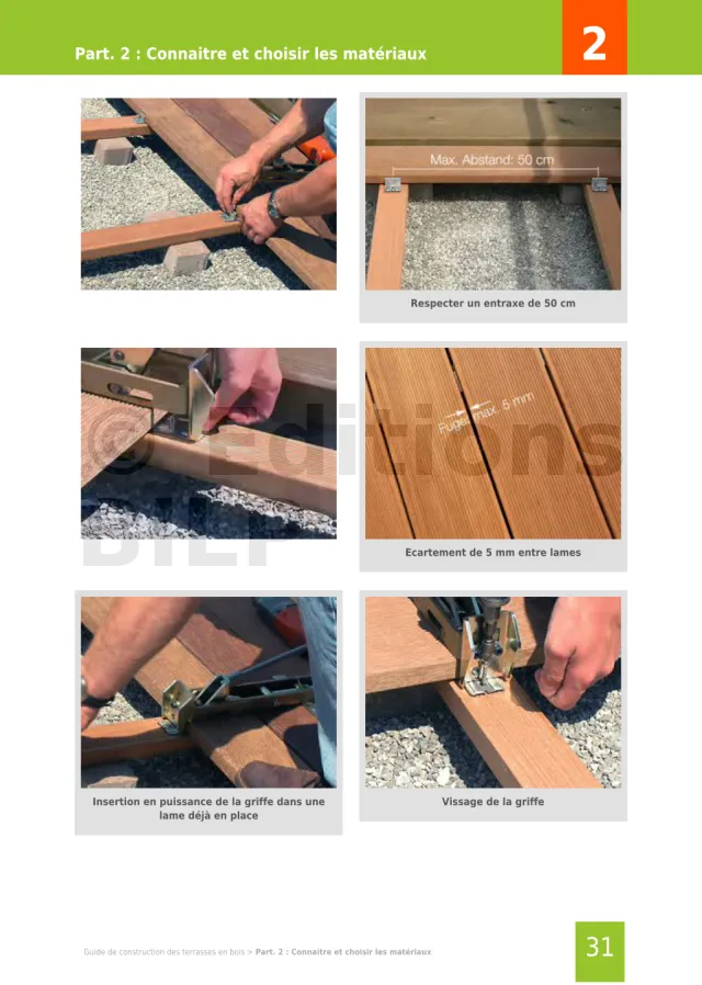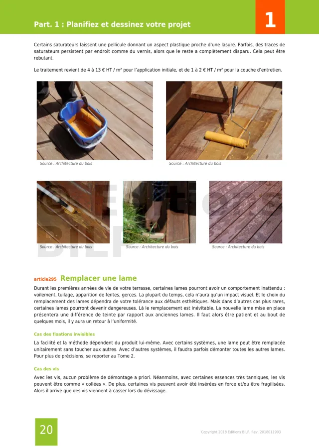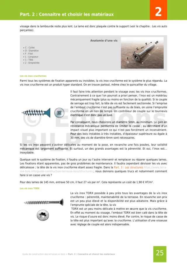 - vous ferez les bons choix de matériaux, les lames de terrasse, les lambourdes, les fixations, etc.