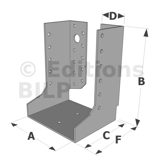 - Charpentes de toit : Ces grands sabots sont utilisés pour fixer solidement les poutres et les chevrons, assurant la stabilité de la structure du toit.