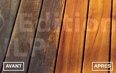 - Dégrise, nettoie les bois restés aux intempéries.