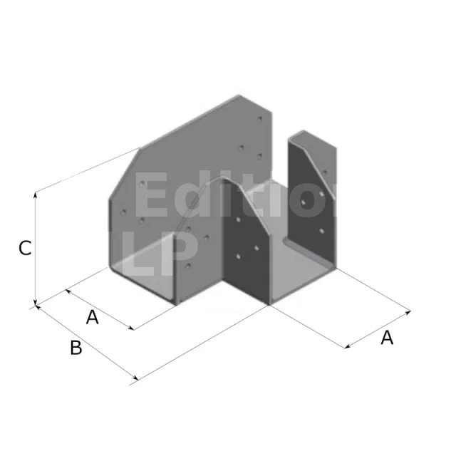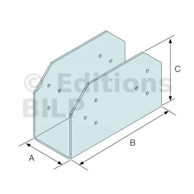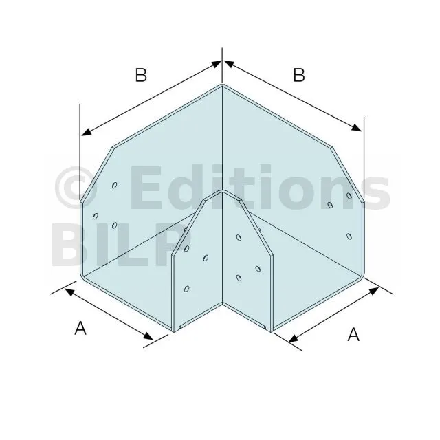 La résistance caractéristique total de la platine est donnée ci-dessus. Si deux éléments bois sont connectés avec une surface d’appui égale, alors la charge appliquée sur chaque élément ne doit pas excéder la moitié de la résistance totale. Si l’un des deux éléments connectés ne repose que sur une aile en porte à faux de la platine, alors la charge appliquée sur cet élément ne doit pas excéder 0.3 fois la résistance totale, la charge appliquée sur l’autre élément reposant sur le reste de la platine ne doit pas excéder 0.7 fois la résistance totale.