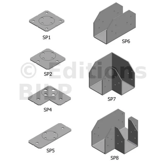 ** Pour les platines SP6, SP7 ou SP8, la traction perpendiculaire au fil du bois devra être vérifiée par l’utilisateur.