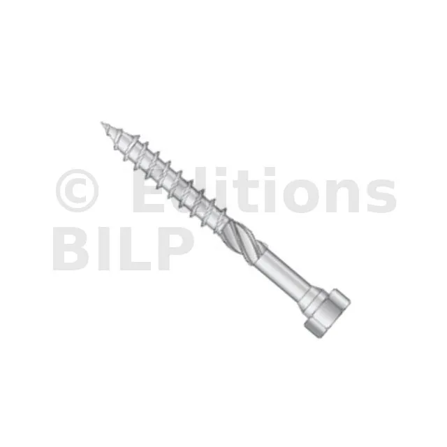 - Une vis dont l’axe est de 45 à 90° du fil du bois dans le cas des ESCR(XXX), et à 90° du fil du bois pour les autres vis.