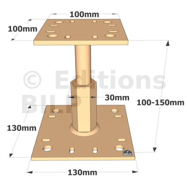 Pieds de poteau réglables en HAUTEUR - Réf. KIT FIX PPRC