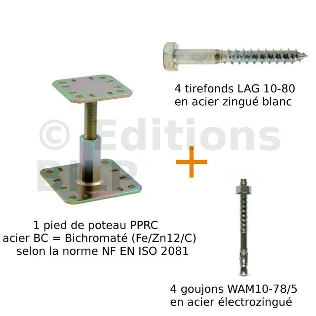 - 1 pied de poteau PPRC en acier bichromaté,