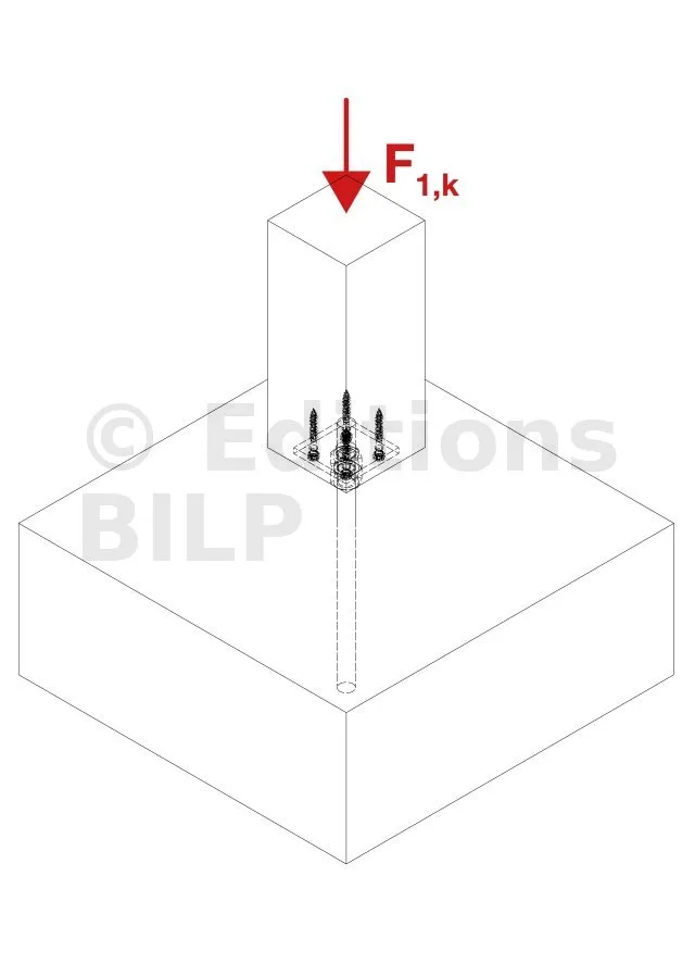 - Connexion bois sur support rigideSur poteau : 2Ø8 (broches STD ou boulons) ; sur béton : 4Ø12 (goujons WA ; tige filetée)
