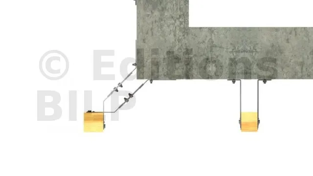 4. Enfin, la fixation de l’équerre sur le porteur béton s’effectue avec deux ancrages Ø8 mm, placés dans les trous oblongs (le plus haut et le plus bas).
