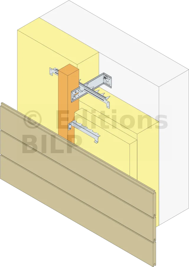 La griffe ABMI permet la fixation de l’isolant contre le support dans le cas d’une Isolation Thermique par l’Extérieur (ITE). Une griffe ABMI est nécessaire sur chaque équerre de bardage EBC.