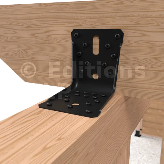 Connexion bois/support rigide type poutre/ support rigide - Assemblage avec 2 équerres