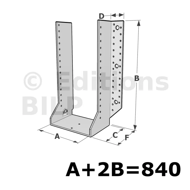 Grands sabots à ailes extérieures, gamme GSE CLASSIQUE (épaisseur 4mm, profondeur 110mm) - Réf. GSE840/4X-AL