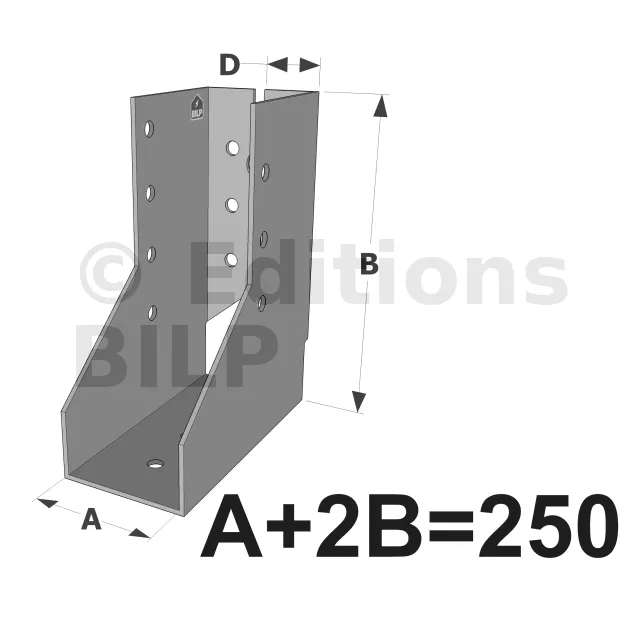 Attention, pour les sabots SAIX à ailes intérieures de largeurs inférieures à 80 mm, les ailes sont recoupées sur la hauteur dans l’axe des perçages de boulons. La fixation sur le porteur est donc uniquement possible par pointes ou vis dans la ligne verticale de perçages Ø5 proche du pli.