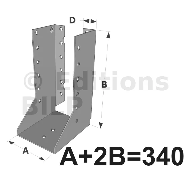 Attention, pour les sabots SAIX à ailes intérieures de largeurs inférieures à 80 mm, les ailes sont recoupées sur la hauteur dans l’axe des perçages de boulons. La fixation sur le porteur est donc uniquement possible par pointes ou vis dans la ligne verticale de perçages Ø5 proche du pli.