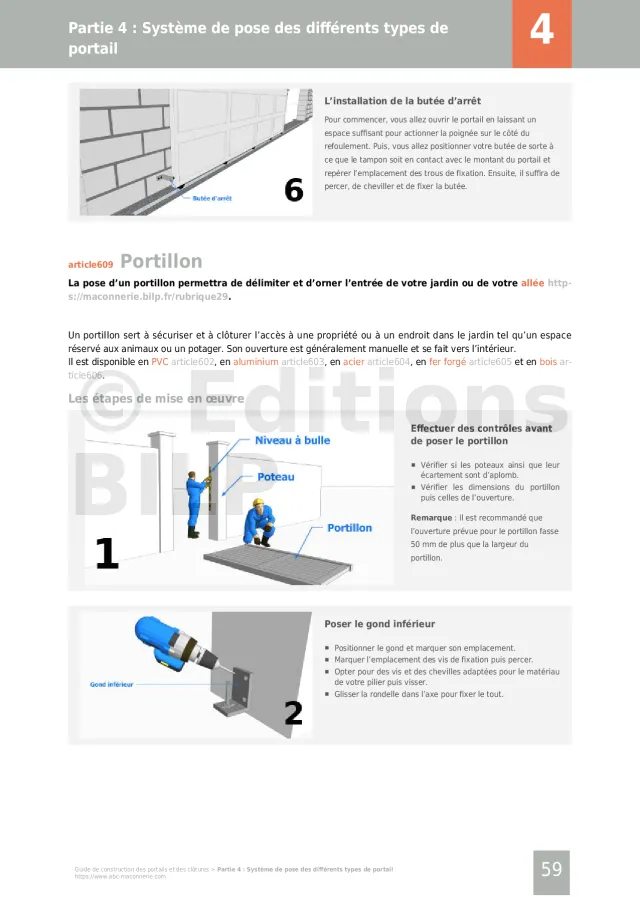 - Système de pose des différents types de portail