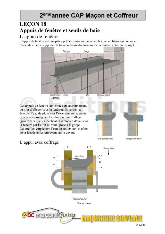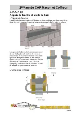 - Leçon 18 : L’appui de fenêtre et seuil