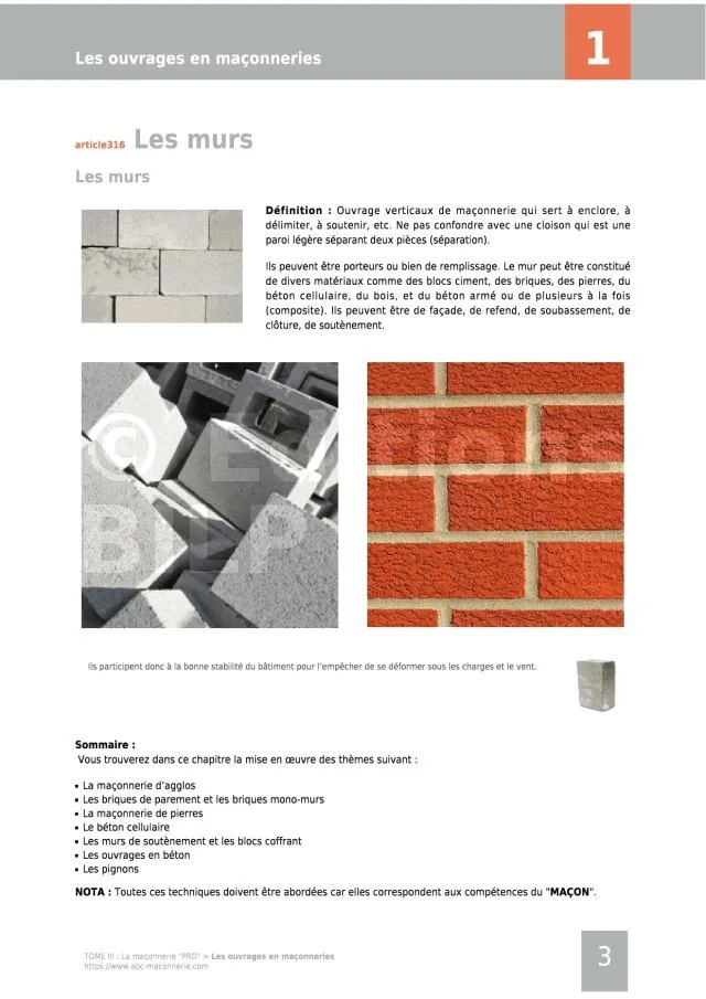 - Leçon 2 : La maçonnerie de blocs de ciment