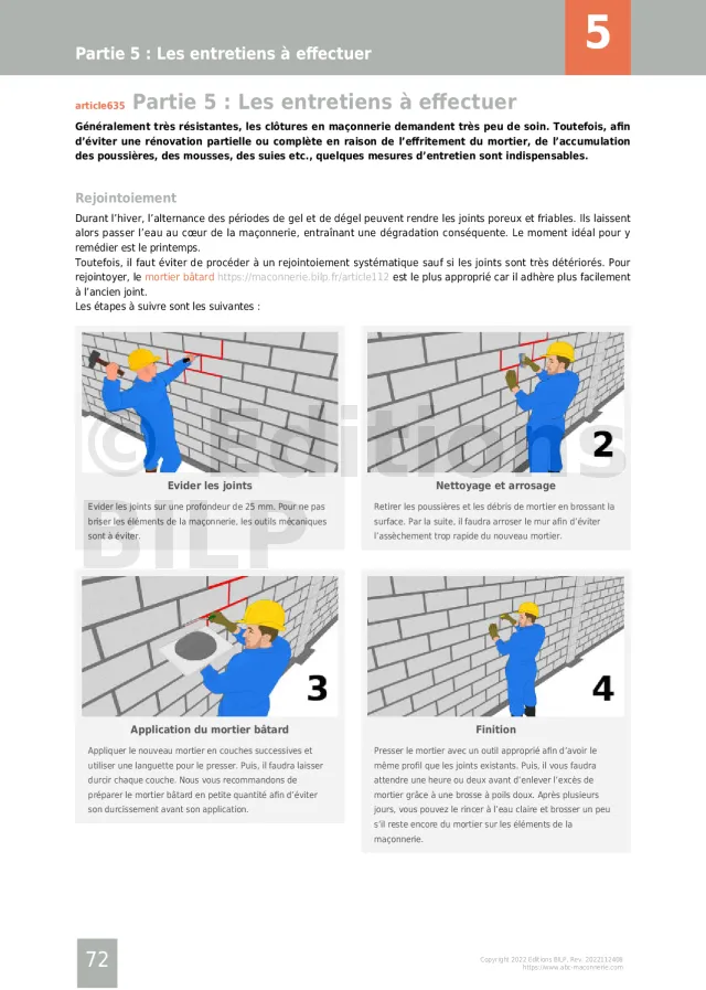 - La maçonnerie des murs