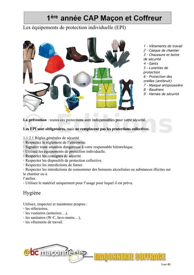 - Leçon 1 : Hygiène, sécurité, outillage et terminologie