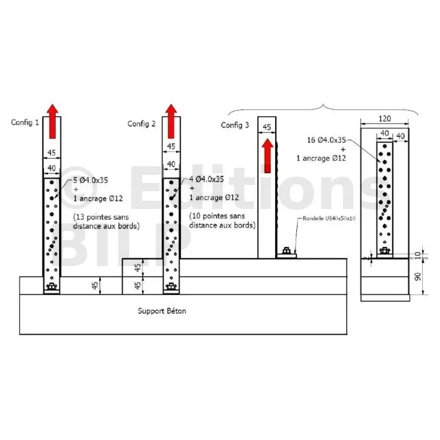 * L’utilisation de pointes Ø4,0x50 dans la configuration 3 n’est possible que si l’épaisseur du montant est supérieure à 50 mm.