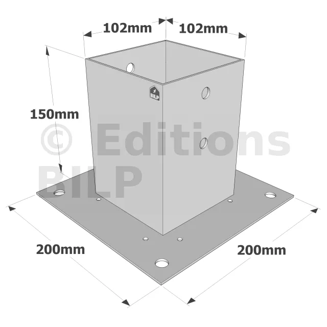 - 1 pied de poteau PPJBT70 ou PPJBT90 en acier galvanisé à chaud,