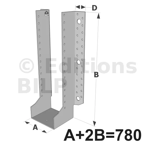 Grands sabots à ailes extérieures, gamme GLE ECONOMIQUE (développé 780mm, épaisseur 2.5mm, profondeur 90mm) - Réf. GLE780/2.5X
