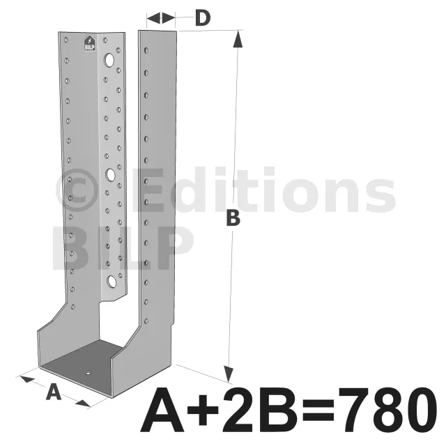 Grands sabots à ailes intérieures, gamme GLI ECONOMIQUE (développé 780mm, épaisseur 2.5mm, profondeur 90mm) - Réf. GLI780/2.5X-AL