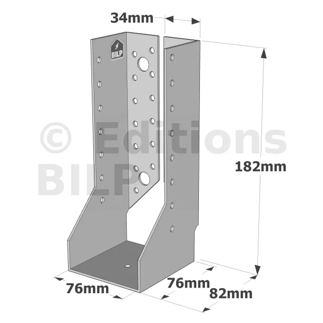 - Robustesse et discrétion : Grâce à leur conception en acier galvanisé, ces sabots sont robustes et résistent aux conditions climatiques difficiles. Les ailes intérieures permettent une intégration discrète, préservant l’esthétique de la structure.