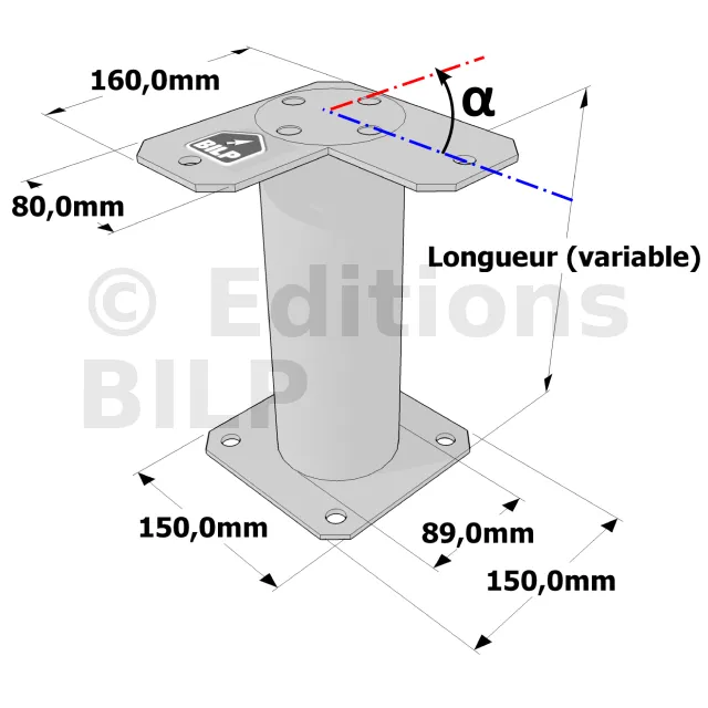 Poteau structurel OSP - D89mm - Platine haute en angle 80x160mm - Embase 150x150mm - Réf. SP1-SP4Ø89_80x160