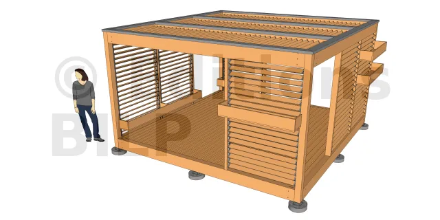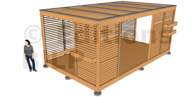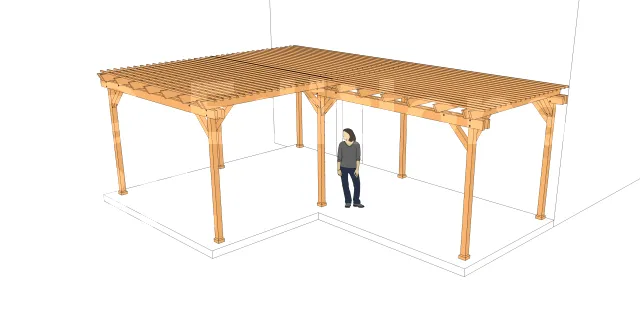 Eine Bibliothek von SKETCHUP-Komponenten "Spezielle Holzkonstruktion" zur schnellen Modellierung Ihrer Pergola