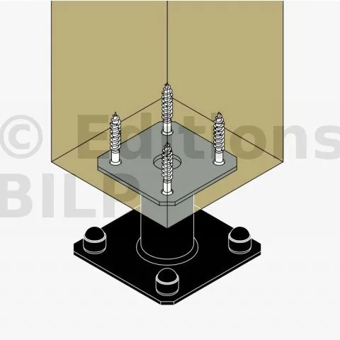 2. Fixer cette platine au poteau à l’aide de tirefonds LAG (pré-perçage nécessaire).