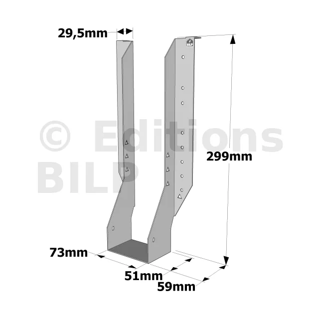 Les étriers à brides latérales IUSE garantissent une mise en œuvre facilitée grâce aux brides supérieures, tout en assurant un maintien de la membrure basse par forte adhérence. Le clouage s’effectue sur les brides latérales après un prépositionnement possible avec le "speed-prong".