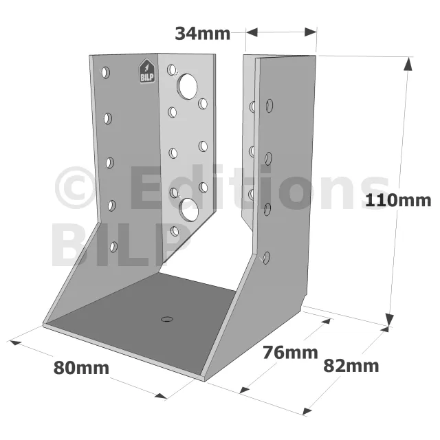 - Robustesse et discrétion : Grâce à leur conception en acier galvanisé, ces sabots sont robustes et résistent aux conditions climatiques difficiles. Les ailes intérieures permettent une intégration discrète, préservant l’esthétique de la structure.