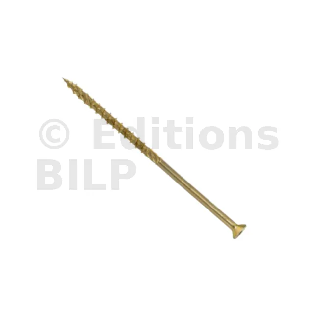 - Tête fraisée avec entrainement torx et nervures de coupe : garantit une finition esthétique.