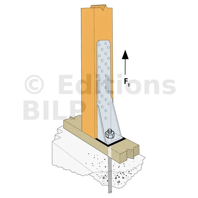 Cet ancrage reprend des efforts de traction dans différentes configurations. Les perçages de pointes permettent d‘adapter la fixation en fonction des configurations : utilisation en travaux neufs, réhabilitation pour le renforcement des structures existantes.