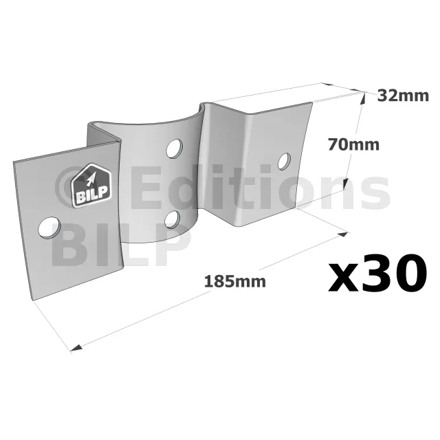 Equerre pour bois ronds - à fixer sur des bois ronds - 185x70x32mm - Réf. RFC80/120_30