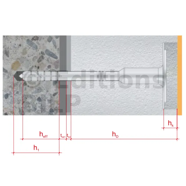 - hef : profondeur d’ancrage (À consulter dans les fiches produits des références concernées.)