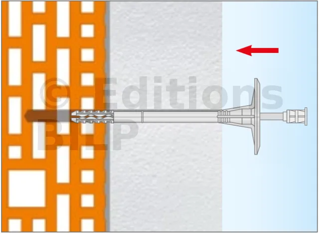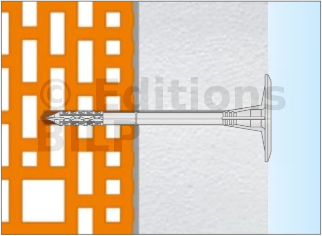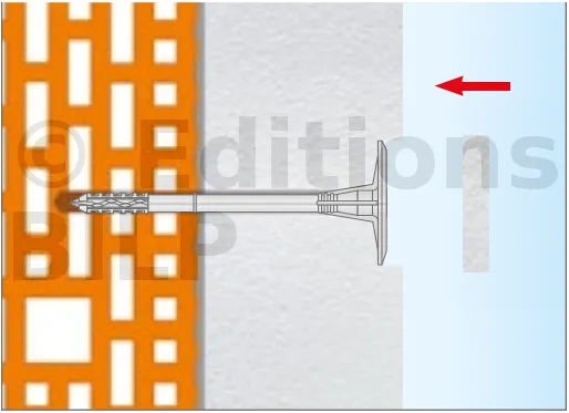 Fixation de l’isolation en polystyrène PSE (polystyrène expansé), PSX (polystyrène extrudé), laine minérale et feutre à lamelles MW.