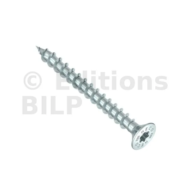 HECO-TOPIX-plus, vis de pose, tête fraisée à poches de fraisage, HECO-Drive, filet total variable, zingué blanc, A3K - Réf. 60752