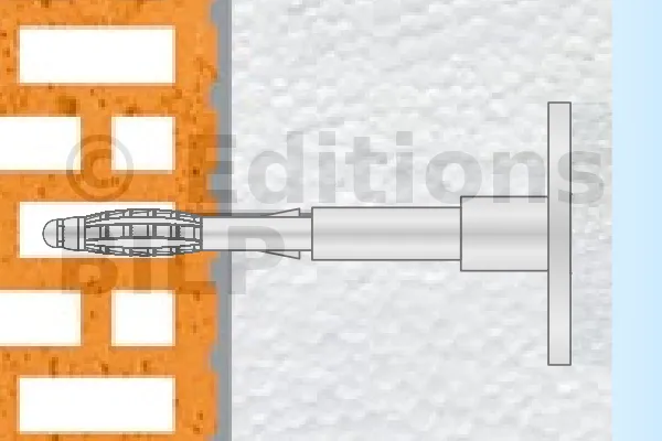 - Disque polystyrène : L’inclusion de disques polystyrène avec les connecteurs permet d’accélérer le travail, d’éliminer les ponts thermiques et d’améliorer l’esthétique de la surface extérieure.