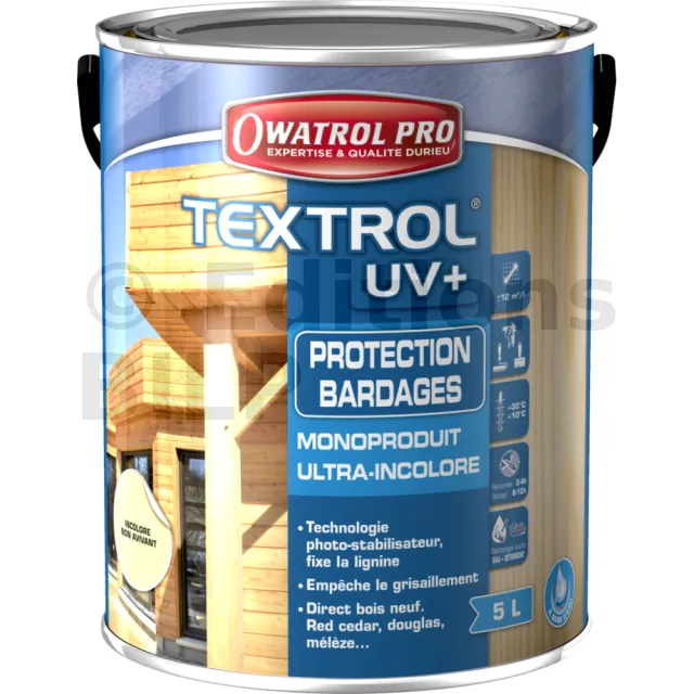 TEXTROL UV+ : Protection Bardage (Mélèze, douglas…) - barrière anti UV - Incolore - Phase aqueuse - Réf. 1101