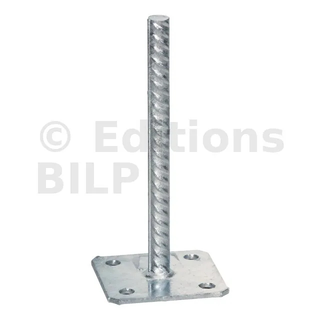 | Pied de poteau simple platine 100 mm (PPSP100) | Haute résistance 44,2 kN • Section 100 mm pour poteaux porteurs • Rond 20 mm : meilleure rigidité et tenue au vent |