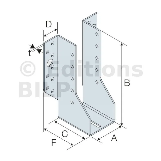 | A | B | C | D | t | Largeur | Hauteur | Porteur | Porté | ||||