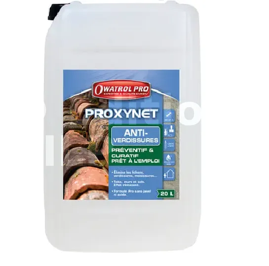PROXYNET : Anti-verdissures PRET A L’EMPLOI. Préventif / Curatif. Effet remanent - Toits / façades / murs / sols... - Réf. PROMOUS20