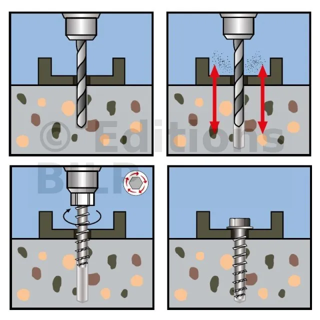 Vis HECO MULTI-MONTI-PLUS SS - tête hexagonale avec embase - zingué blanc - D10 x L60 - Réf. 48399