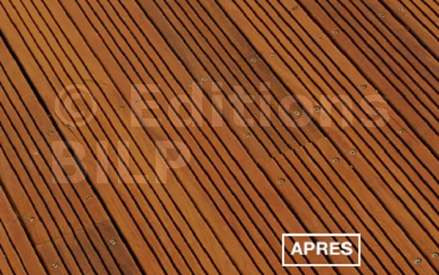 - Bois durs : Teck, Ipé, Bangkiraï, Acacia, Maçaranduba, … pour Iroko/Azobé (nous consulter).