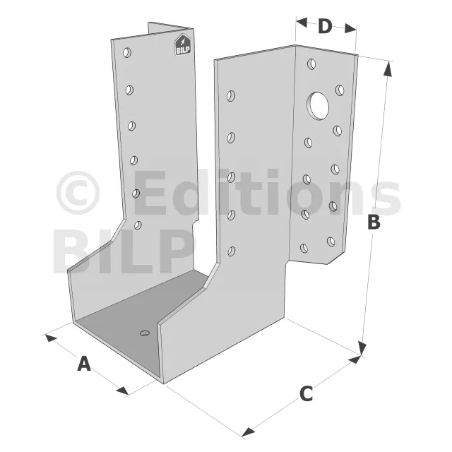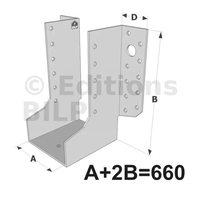 Grands sabots à ailes extérieures, gamme GLE ECONOMIQUE (développé 380mm, épaisseur 2.5mm, profondeur 90mm) - Réf. GLE660/120/2,5