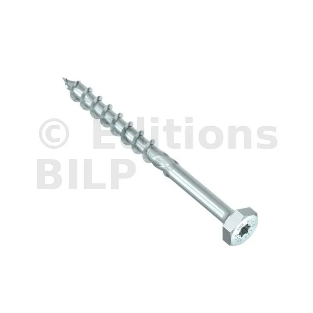 HECO-TOPIX-plus, tête hexagonale combinée, tête hexagonale + T-Drive, filet partiel, zingué blanc - Réf. 61273
