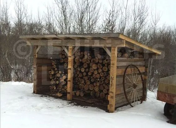 C’est une construction beaucoup plus simple qui servira davantage de zone de stockage organisée que d’abris. Le bois de chauffage n’a pas réellement besoin d’être protégé des intempéries et des insectes, c’est une construction qui peut facilement être transformée à partir d’une cabane semi-ouverte. Sinon vous pouvez aussi retirer un ou plusieurs pan de mur de la cabane existante pour permettre un accès plus facile aux bûches.