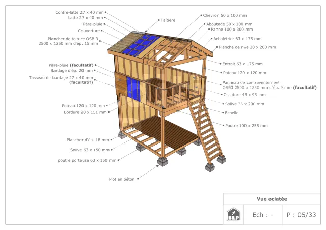 Cette cabane sur pilotis permettra à vos enfants d’observer la faune et la flore de votre jardin tout en sécurité. La partie située sous la plateforme pourra servir d’abri, ou de coin jeu pour s’amuser à l’abri de la pluie.